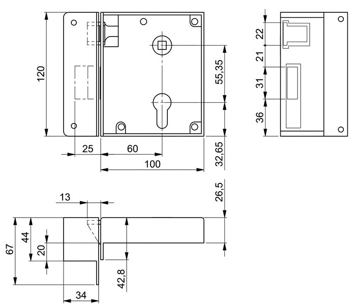 AMF Schließkappenschloss 2 DIN rechts PZW ( 3311021051 )