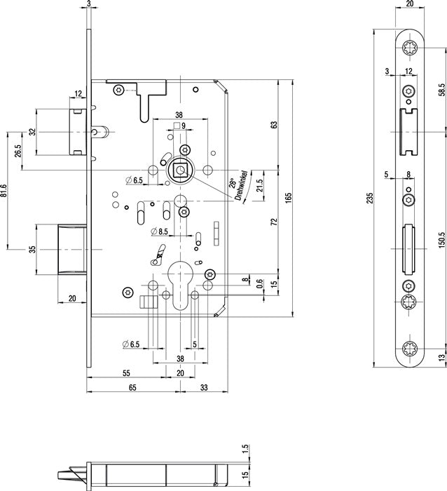 Panik-Einsteckschloss 2320 Panik-Funktion B abgerundet