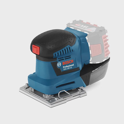 Der Bosch GSS 18 V-10 Schwingschleifer ist der erste 18 Volt Schwingschleifer auf dem Markt und ermöglicht dem Anwender anders als bei kabelgebundenen Geräten ein einfaches Arbeiten an schwer zugänglichen Werkstücken, selbst Handwerken über Kopf ist mit dem Gerät ohne Weiteres möglich. Der ergonomische Handgriff mit Softgrip garantiert sicheren Halt in verschiedensten Lagen und lässt auch einhändiges Arbeiten zu. Verschiedene Schleifpapiere lassen sich mit dem "Easy Fit" Spannsystem oder Mikro-Klett-Verschlüssen sehr schnell und sicher umrüsten.
