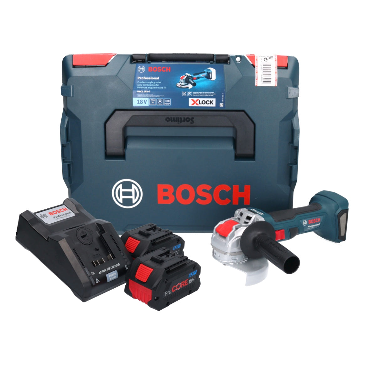 Bosch GWX 18V-7 Professional Akku Winkelschleifer 18 V 125 mm Brushless X-LOCK + 2x ProCORE Akku 5,5 Ah + Ladegerät + L-Boxx