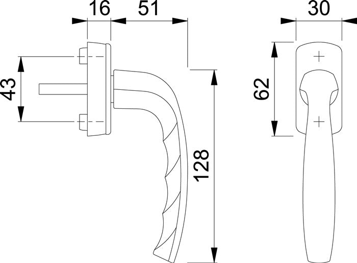 Fenstergriff Secustik® geprüft nach RAL-RG 607/9 · erfüllt die Anforderungen nach AhS RAL-RG 607/13 · federnd gelagerte, drehbare Abdeckkappe · Kunststoff-Rosette mit Stütznocken · 7 mm Vollstift · 10 mm Längenvarianz (32-42 mm) · Seitenrastung mit positionsgenauer Raststellung · selbsttätige Verriegelung gegen unbefugtes Verschieben des Fensterbeschlages und Verdrehen des Vierkantstiftes von außen · inklusive Schrauben M5x45 mm und M5x50 mm