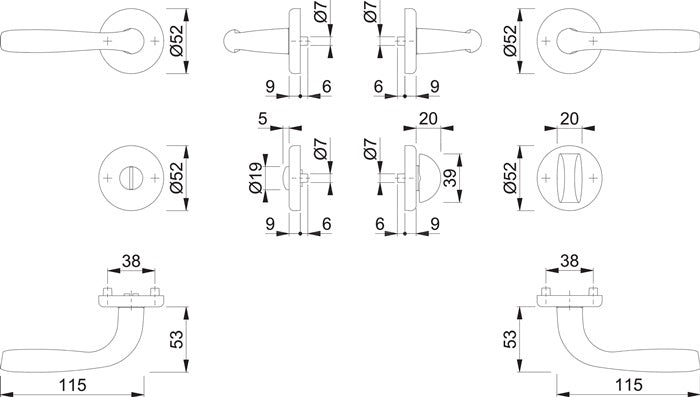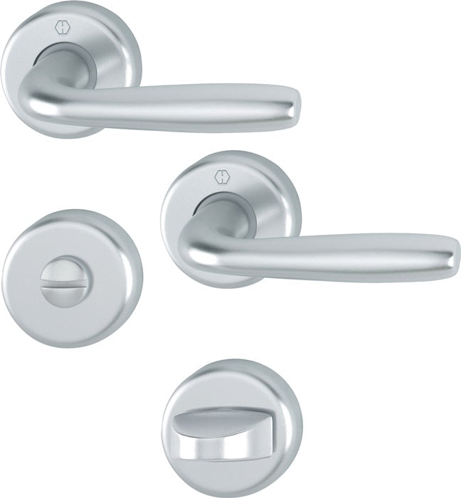 Innentür-Rosetten-Garnitur · Türgriffe fest/drehbar, Rückholfedern, wartungsfreie Gleitlager · HOPPE-Vollstift · Unterkonstruktion: Kunststoff, Stütznocken Befestigung: verdeckt, durchgehend, wechselseitig, Mehrzweckschrauben HOPPE-Schnellmontage · Anschlagrichtung DIN links / rechts · für Türstärke 37-42 mm