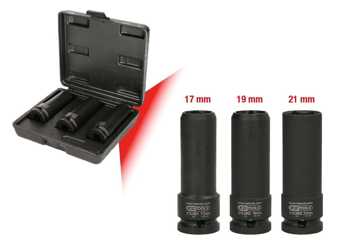 KS TOOLS 1/2" Spezial-Kraft-Stecknuss-Satz für geschraubte Spurplatten, 3-tlg ( 515.0605 )