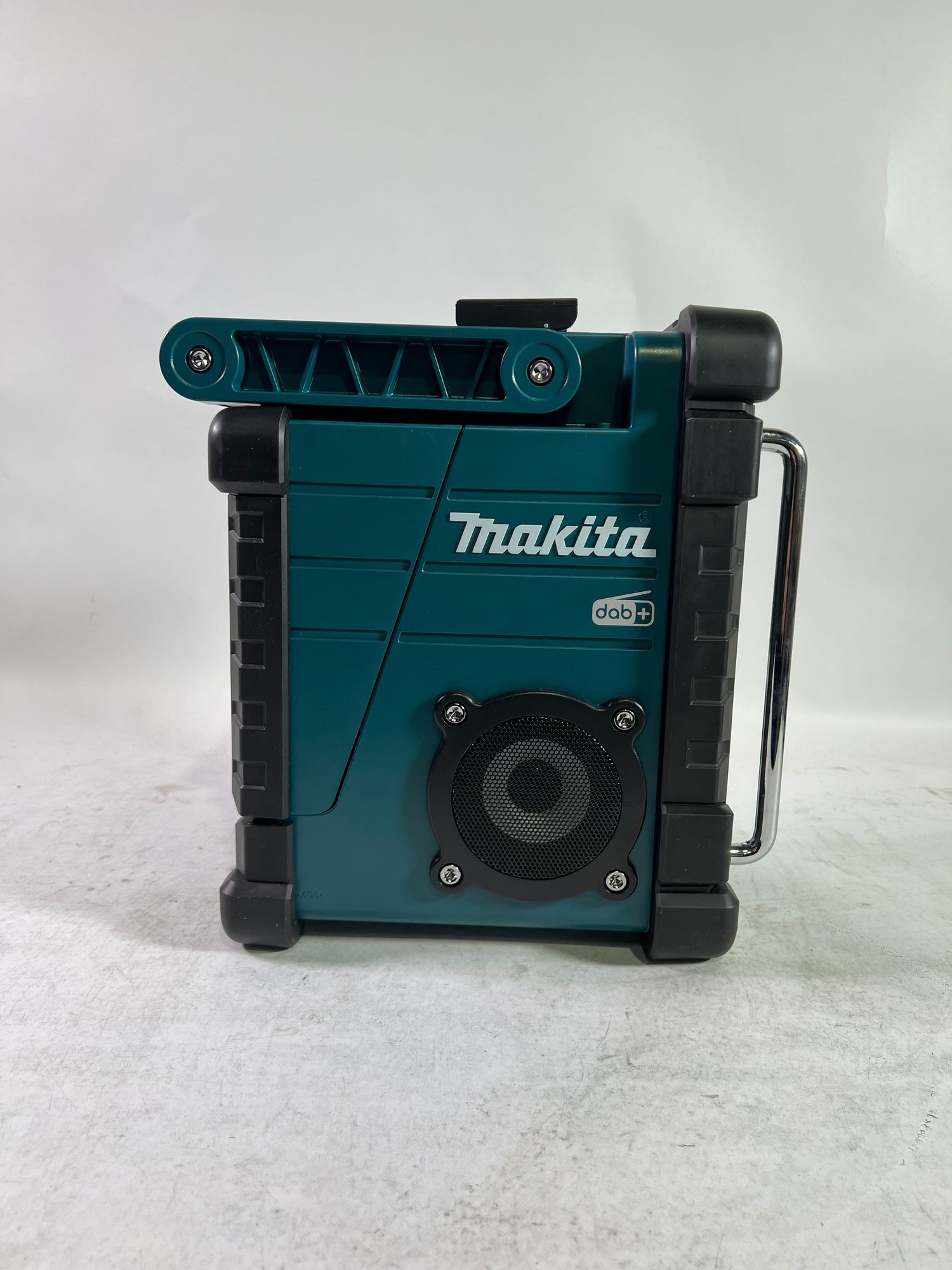 Das Makita DMR 110 N Akku Baustellenradio ist ein zuverlässiges und robustes Radio, das speziell für den Einsatz auf Baustellen entwickelt wurde. Es bietet UKW- und DAB/DAB+-Empfang, sodass Sie sowohl analoge als auch digitale Radiosender in bester Qualität hören können. Das Radio ist kompatibel mit Li-Ionen-Akkus der Serien 10,8 V, CXT und LXT, kann aber auch mit einem Netzadapter betrieben werden. NiCd/NiMH-Akkus und Akkus der Maktec/G-Serie sind nicht verwendbar. Dank der IP64-Zertifizierung ist das Radio gegen Spritzwasser geschützt und somit ideal für raue Umgebungen. Die automatische Abstimmung ermöglicht eine einfache Senderwahl, mit der Option, bis zu 5 Sender zu speichern. Mit Stereo-Lautsprechern sorgt das Baustellenradio für klaren, satten Sound. Die gummierte Ummantelung schützt das Gerät vor Stößen und Beschädigungen, und über den Klinkeneingang auf der Vorderseite können externe Geräte angeschlossen werden.