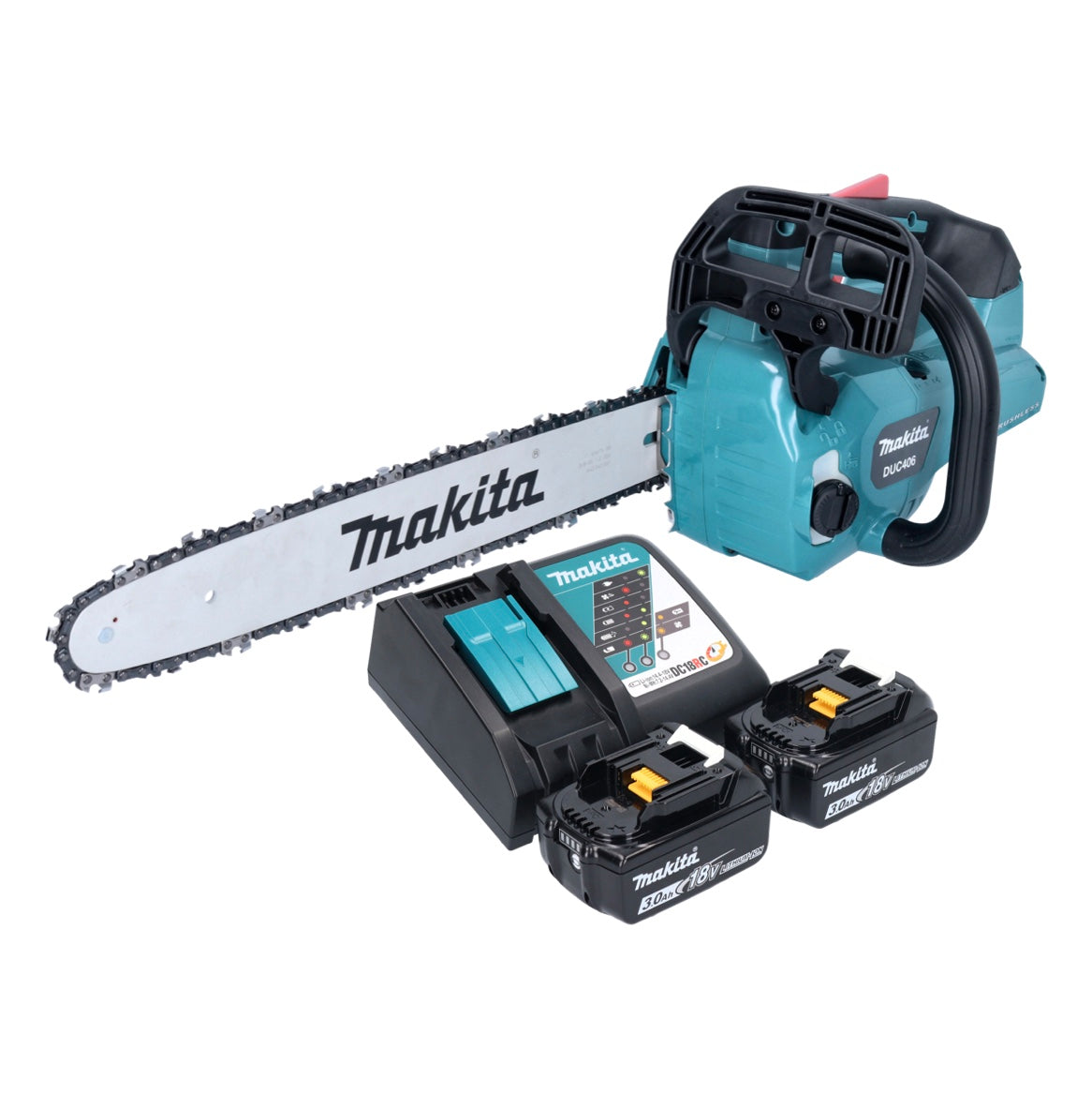Makita DUC 406 RFB Akku Kettensäge 36 V ( 2x 18 V ) 40 cm Brushless + 2x Akku 3,0 Ah + Ladegerät