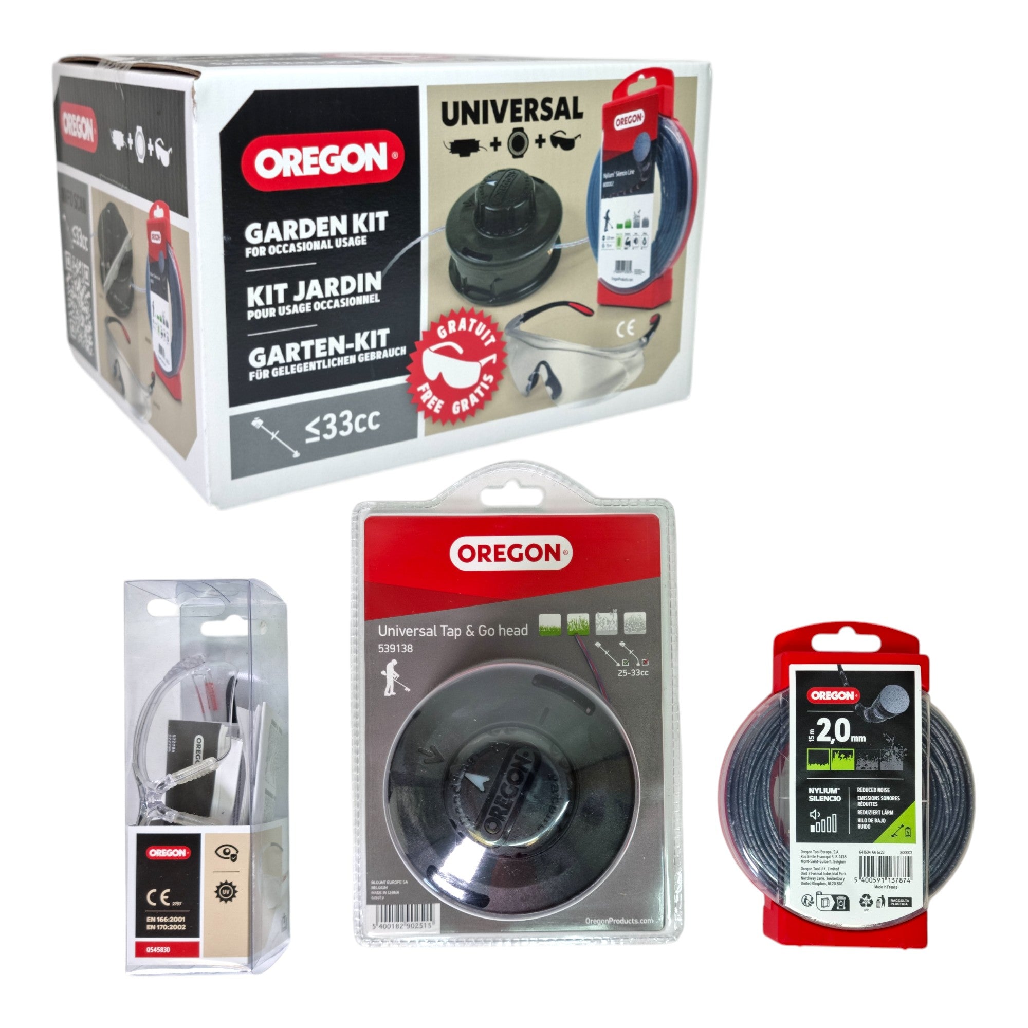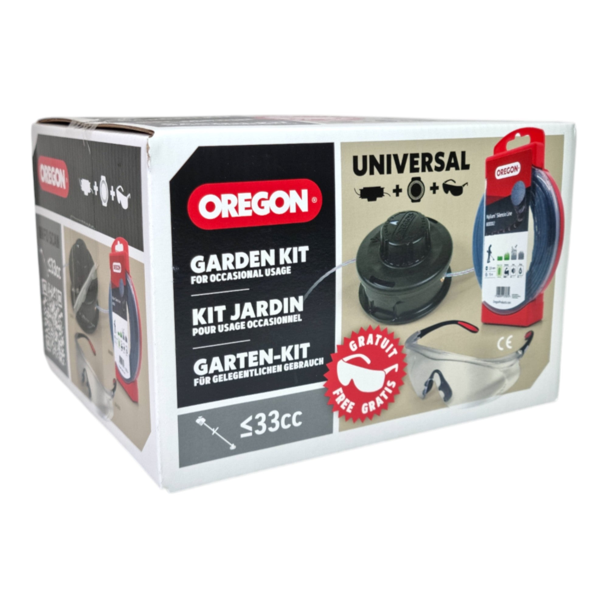 Das Oregon Garten Set bietet alles, was Sie für die anspruchsvolle Gartenarbeit benötigen. Der Fadenkopf der Marke Lightning Load™ ist mit Mähfäden in rundem, sternförmigem und quadratischem Querschnitt ausgestattet und passt auf die meisten Freischneider. Er wurde speziell für die intensive Nutzung auf Rasen und für das Entfernen von Unkraut entwickelt. Mit seiner hohen Lastkapazität und einer einfachen Montage, bei der keine Demontage erforderlich ist, sorgt der Mähkopf für eine effiziente Arbeit. Zudem reduzieren die Adapter-Armaturen Vibrationen erheblich, während der breite Radius und die große Oberfläche des Knopfes eine schnelle und reibungslose Vorwärtsbewegung ermöglichen. Der Trimmerfaden Oregon® TerraMax™ wurde speziell für den Einsatz in rauem, trockenem und felsigem Gelände entwickelt und ist ideal für Profis. Hergestellt aus einer hochwertigen Copolymer-Mischung bietet der Faden zusätzliche Festigkeit und Steifigkeit, um selbst unter schwierigen Bedingungen ein hervorragendes Ergebnis zu erzielen. Abgerundet wird das Set durch ergonomische Schutzbrillen, die über einer Brille getragen werden können. Diese bieten Stoß- und UV-Schutz und kombinieren dabei hohen Komfort mit überragender Haltbarkeit, sodass Sie auch bei längeren Einsätzen stets gut geschützt sind.