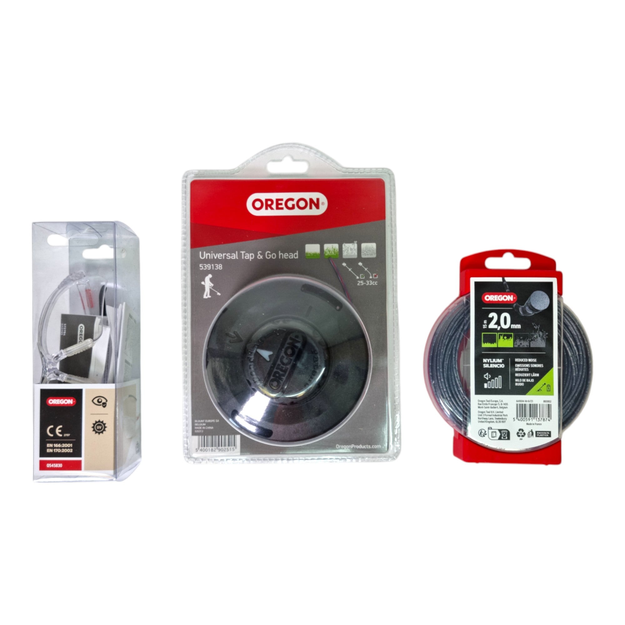 Oregon Garten Set Fadenkopf + Faden + Schutzbrille ( 646568 ) für Freischneider bis 33 cm³