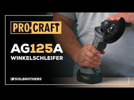 Procraft Industrial AG125A Akku Winkelschleifer 20 V 125 mm Brushless + 1x Akku 4,0 Ah + Ladegerät + Koffer