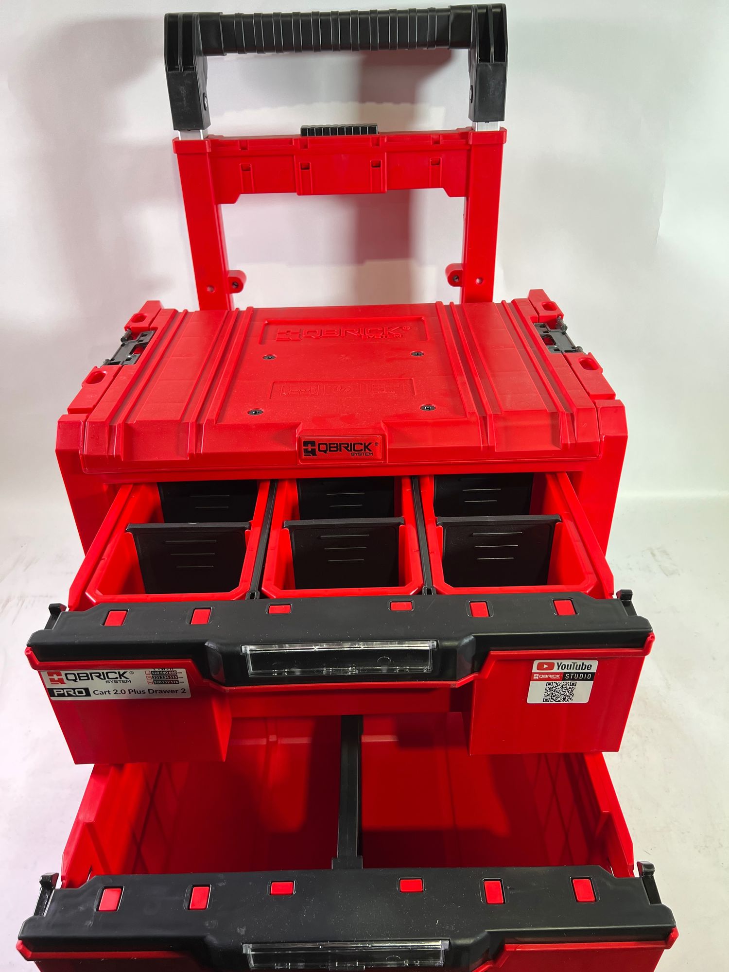 Qbrick System PRO Cart 2.0 Plus Drawer 2 Red Ultra HD Custom mobile Box auf Rädern 520 x 415 x 660 mm 9,5 l 12 l abnehmbarer Doppelteleskopgriff - Beschädigt