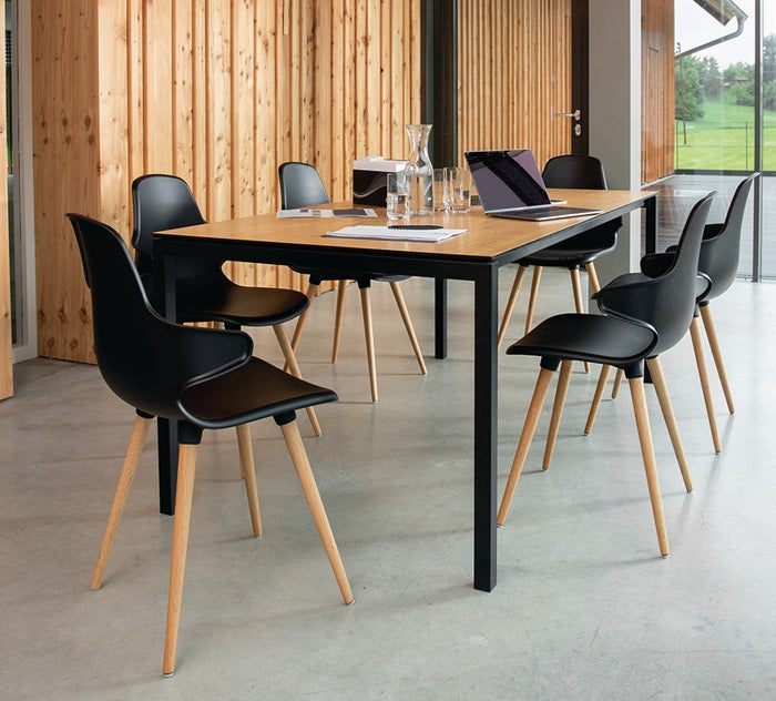 für einen vielfältigen Einsatz · für den Wartebereich, Konferenzräume, Kantine, Aufenthaltsräume, Cafeteria etc. · 4-Fuß-Stuhl · ergonomische Kunststoffschale · Füße verschraubbar über eine Gewindestange in das Sitzträgerkreuz · Kunststoffgleiter für alle Fußböden geeignet · VE = 2 Stück im Karton Lieferung erfolgt zerlegt