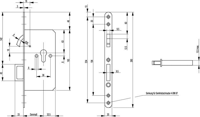 BKS Compass bolt lock 0353 ( 3000250761 ) Compass bolt / spring handle 20 x 260 mm