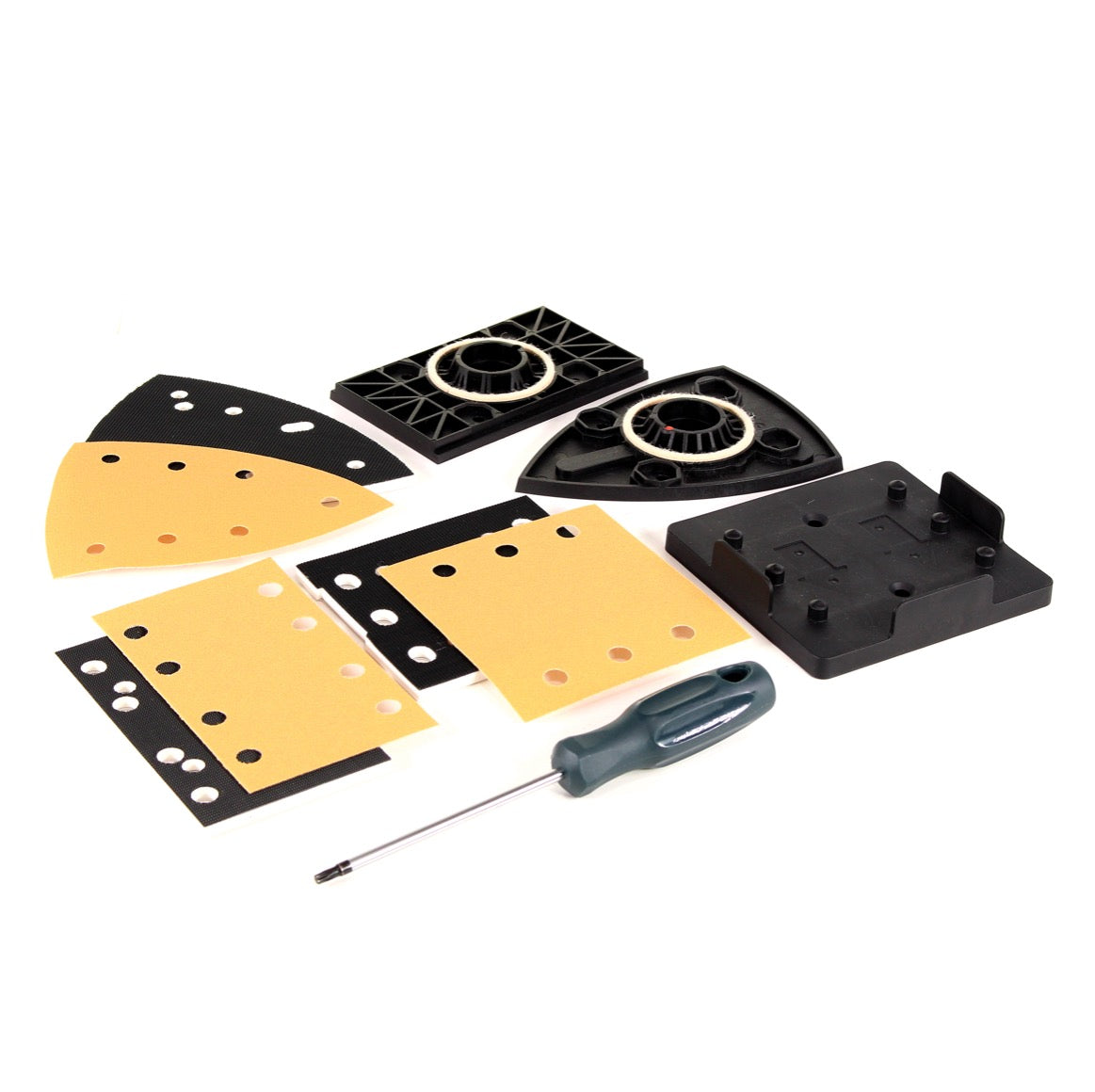 - 1x placa base (Delta), 100 x 150 mm (2 608 601 448) con placa lijadora (2 608 601 445)