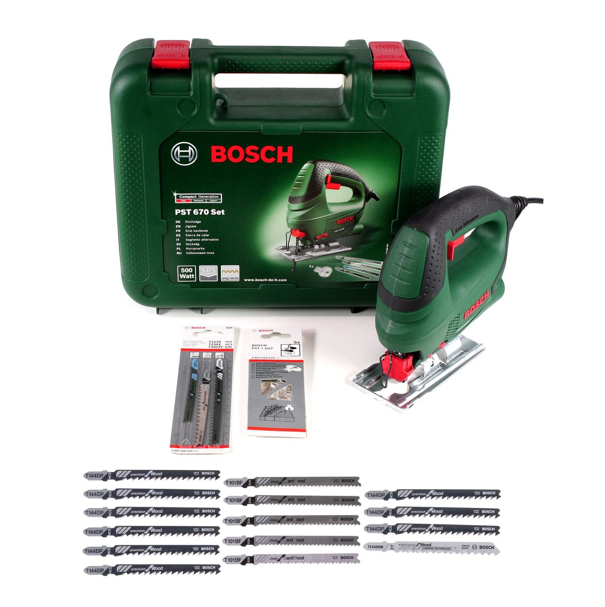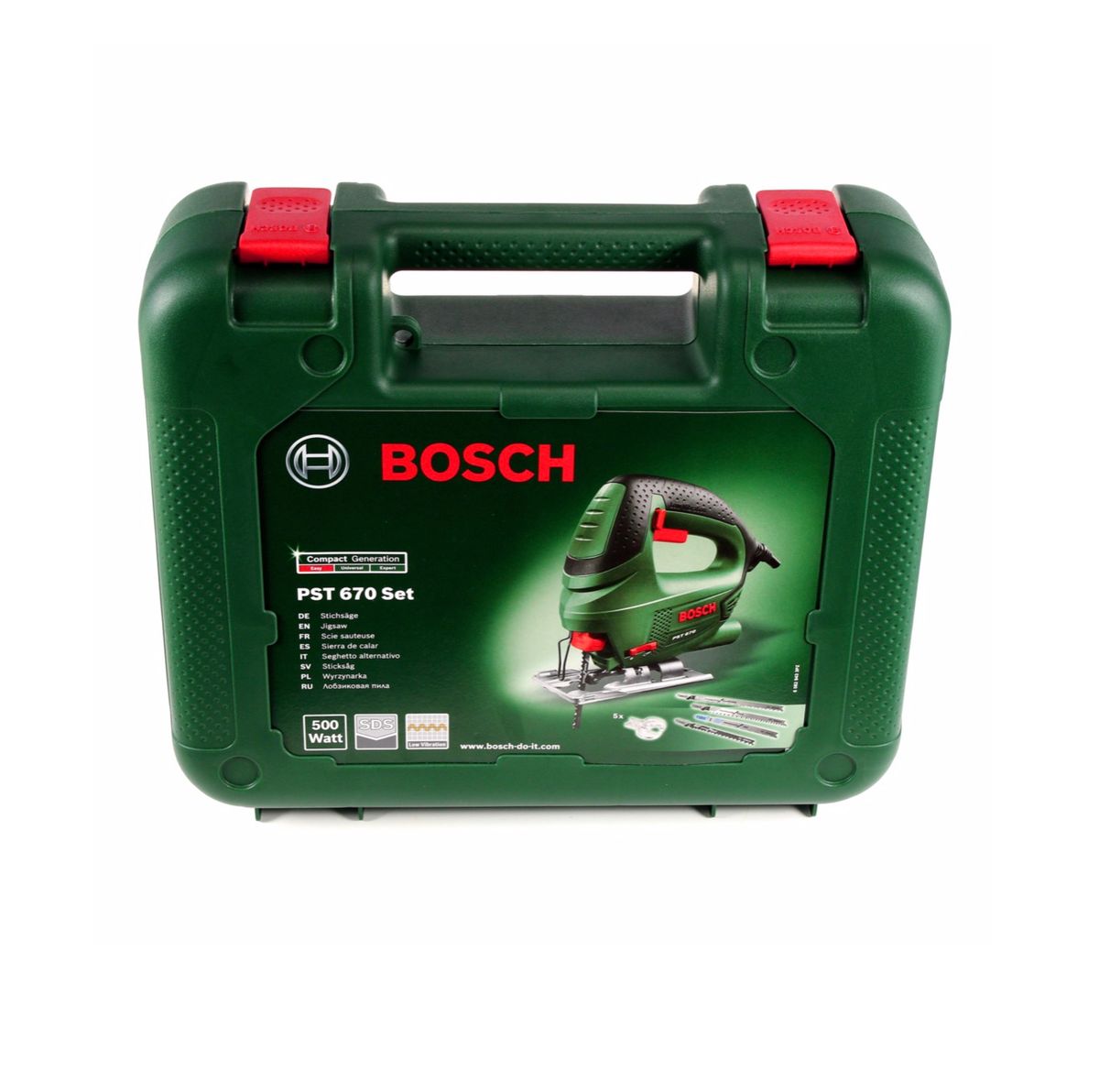 Sierra de calar para bricolaje Bosch PST 670 (CT) 500W + 18x hojas de sierra de calar + estuche