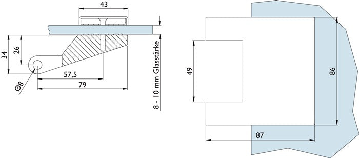 Glass door hinge 6315-20 ( 3000253949 ) Light metal stainless steel coloured for 3-piece