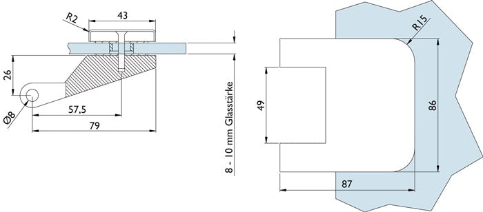 Glass door hinge 6325-20 ( 3000253950 ) Light metal stainless steel coloured for 3-piece