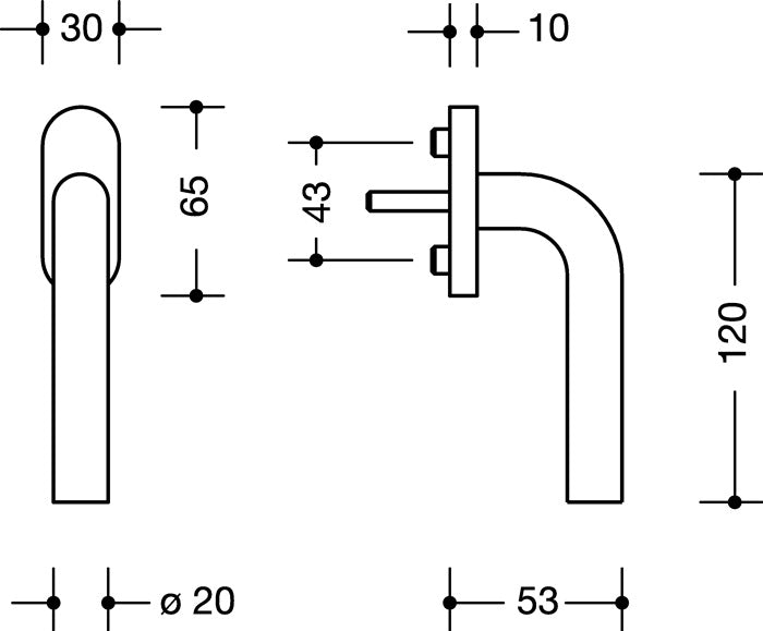 HEWI window handle 111FG.6 30mm plastic 99 pure white ( 3000205791 )