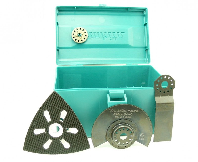 Herramienta multifunción Makita BTM 50 con batería de iones de litio de 18 V + maletín Makita que incluye juego de herramientas de 8 piezas