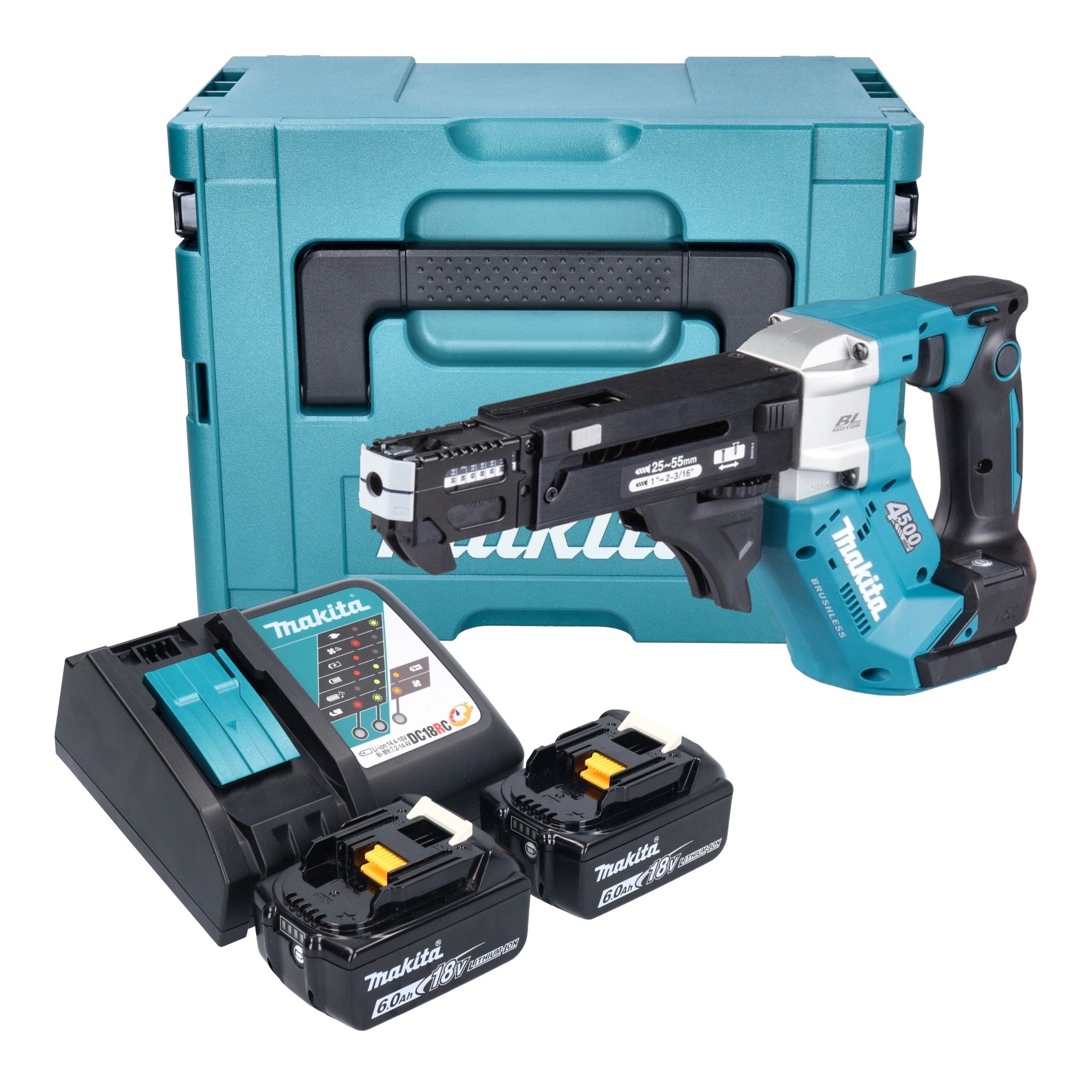 Makita DFR 552 RGJ cordless magazine screwdriver 18 V 25 - 55 mm brushless + 2x 6.0 Ah battery + charger + Makpac