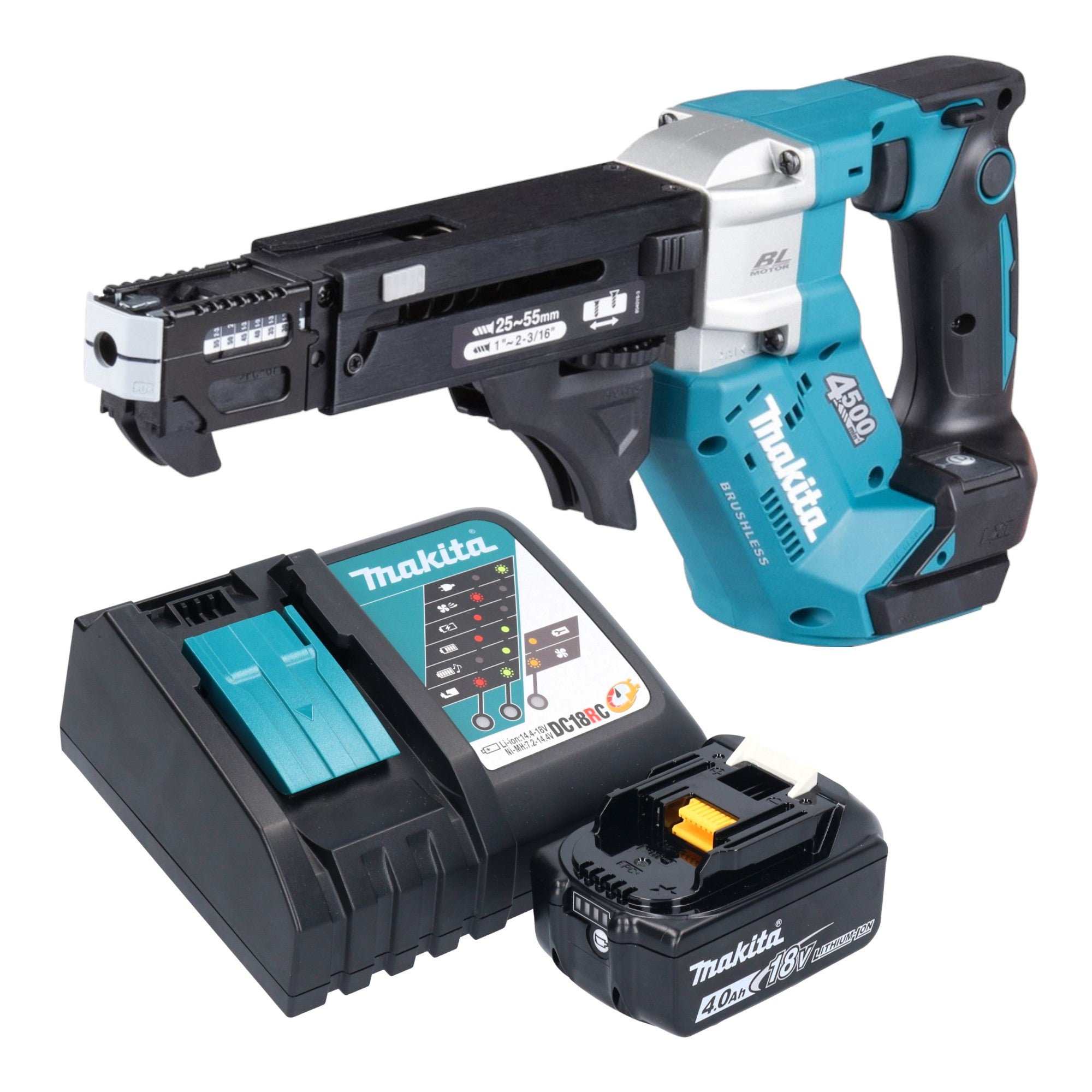 Makita DFR 552 RM1 cordless magazine screwdriver 18 V 25 - 55 mm brushless + 1x battery 4.0 Ah + charger