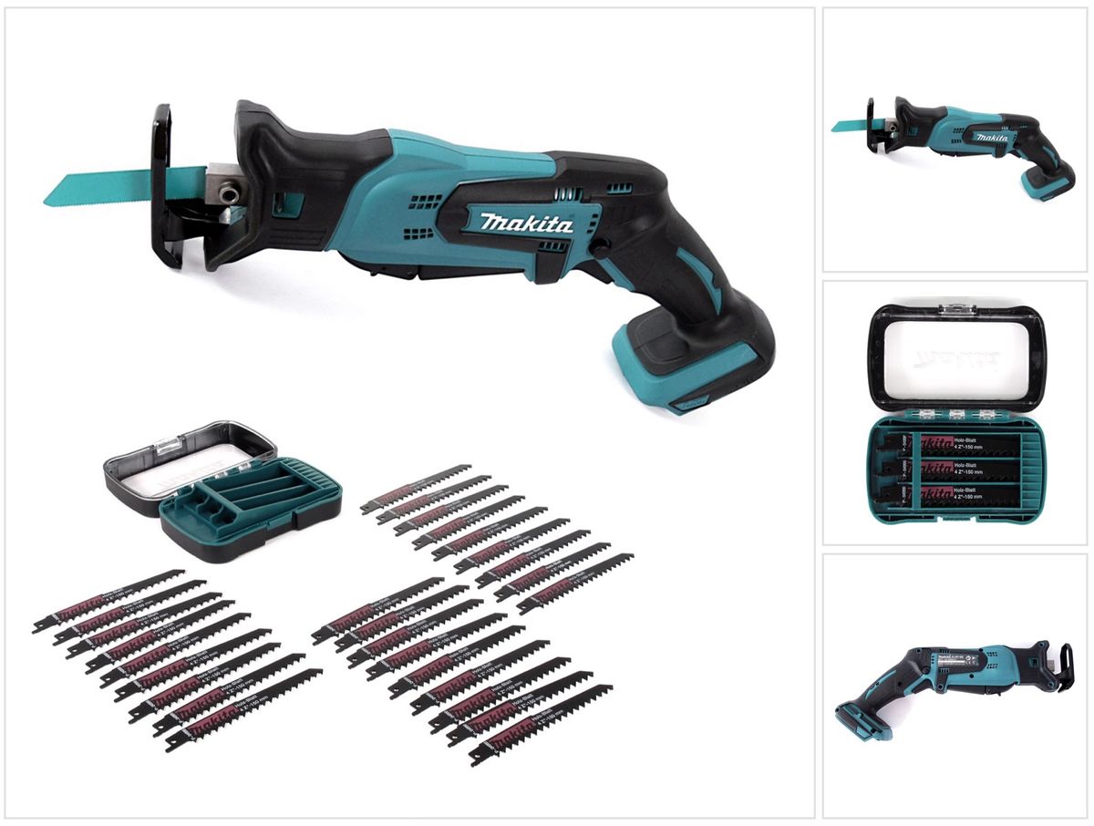 Makita DJR 185 Z Batería de iones de litio de 18 V Sierra de sable Solo + juego de hojas de sierra de 27 piezas