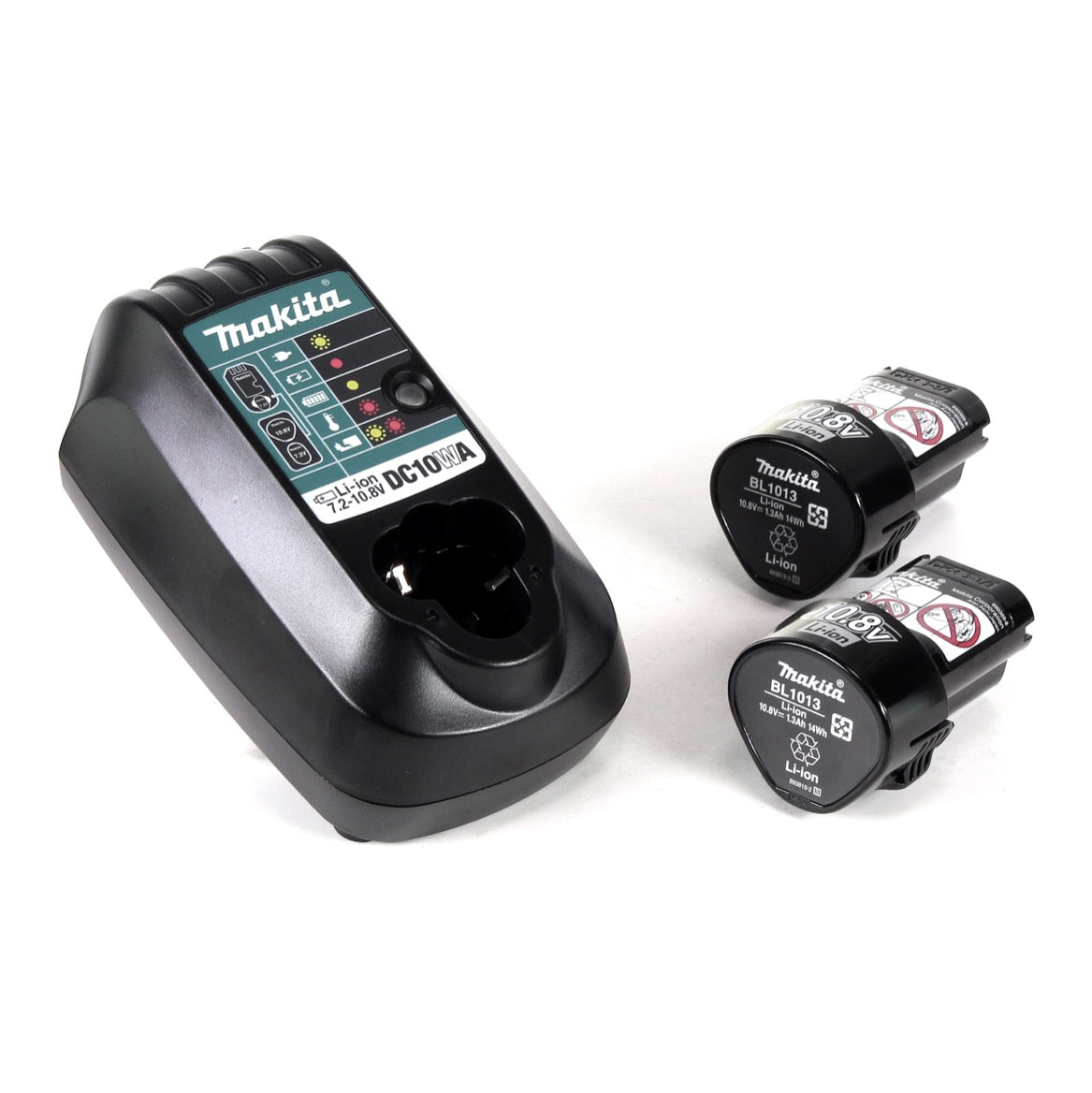 Atornillador de impacto a batería Makita TW 100 DWEJ 10,8 V 3/8" en Makpac + 2 baterías BL1013 1,3 Ah + cargador DC 10 WA
