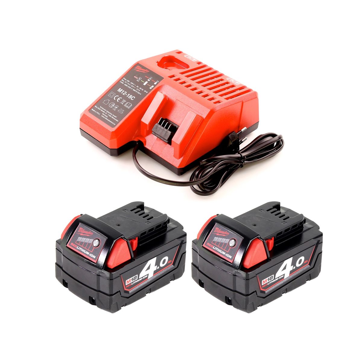 - 2x batería Milwaukee M18 B4 18 V / 4,0 Ah (4932430063)
