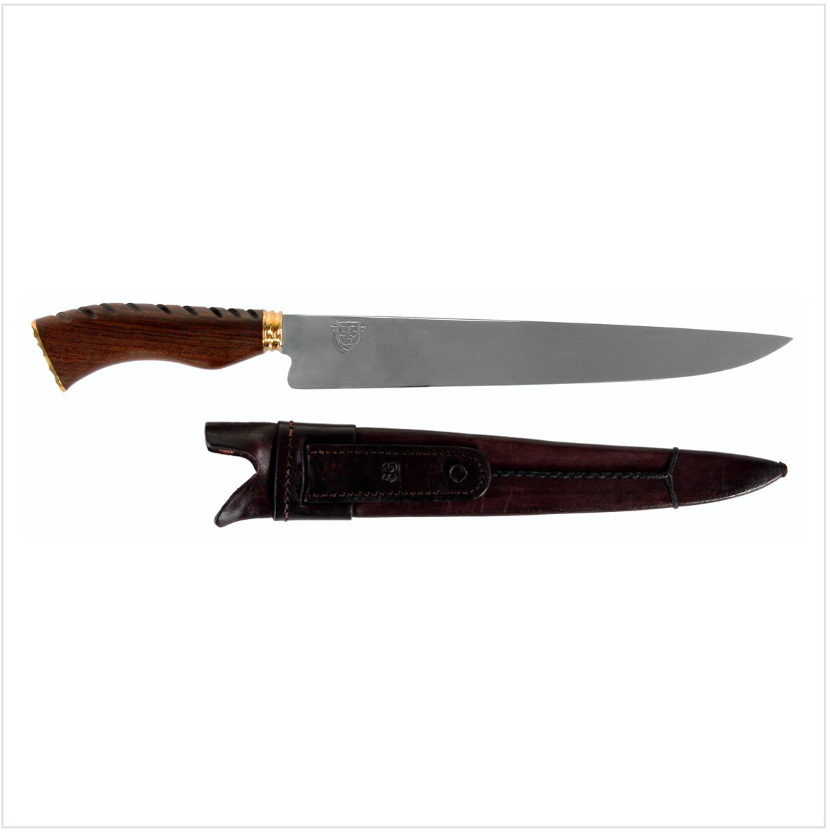 Cuchillo de cocina brasileño Serra Grande "Faca Campeira" INOX 25,4 cm cuchillo cebollero mango de madera forjado a mano + funda de cuero