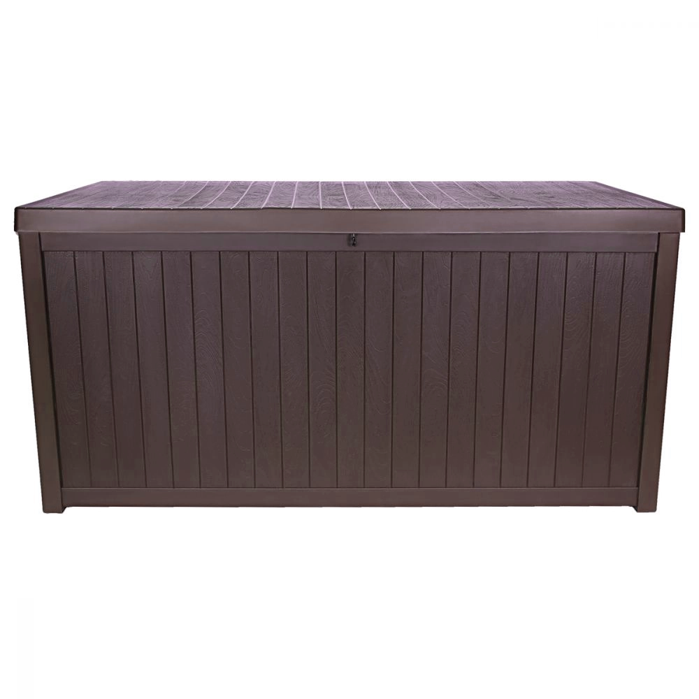 Caja de almacenamiento de plástico TOUGH MASTER 430L con bisagras, asa lateral, tapa con cerradura, resistente al agua y a la intemperie con apariencia de madera ( TM-SBW43H )