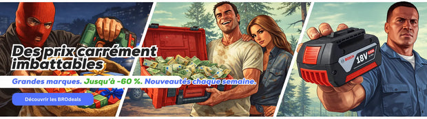 Nous te proposons régulièrement de nouvelles offres et promotions ! De MAKITA à FESTOOL en passant par MILWAUKEE et BOSCH, de la visseuse sans fil à la scie circulaire en passant par le marteau perforateur, tes Toolbrothers ne te laisseront pas tomber. Dans notre monde des bonnes affaires, nous te proposons constamment de nouvelles offres spéciales et des bons plans sur les outils à des prix imbattables. Nous essayons de maintenir les offres aussi longtemps que possible afin que chaque Toolbrother puisse en profiter, mais ce n'est pas si facile avec les prix actuels. Il vaut donc la peine d'être rapide !