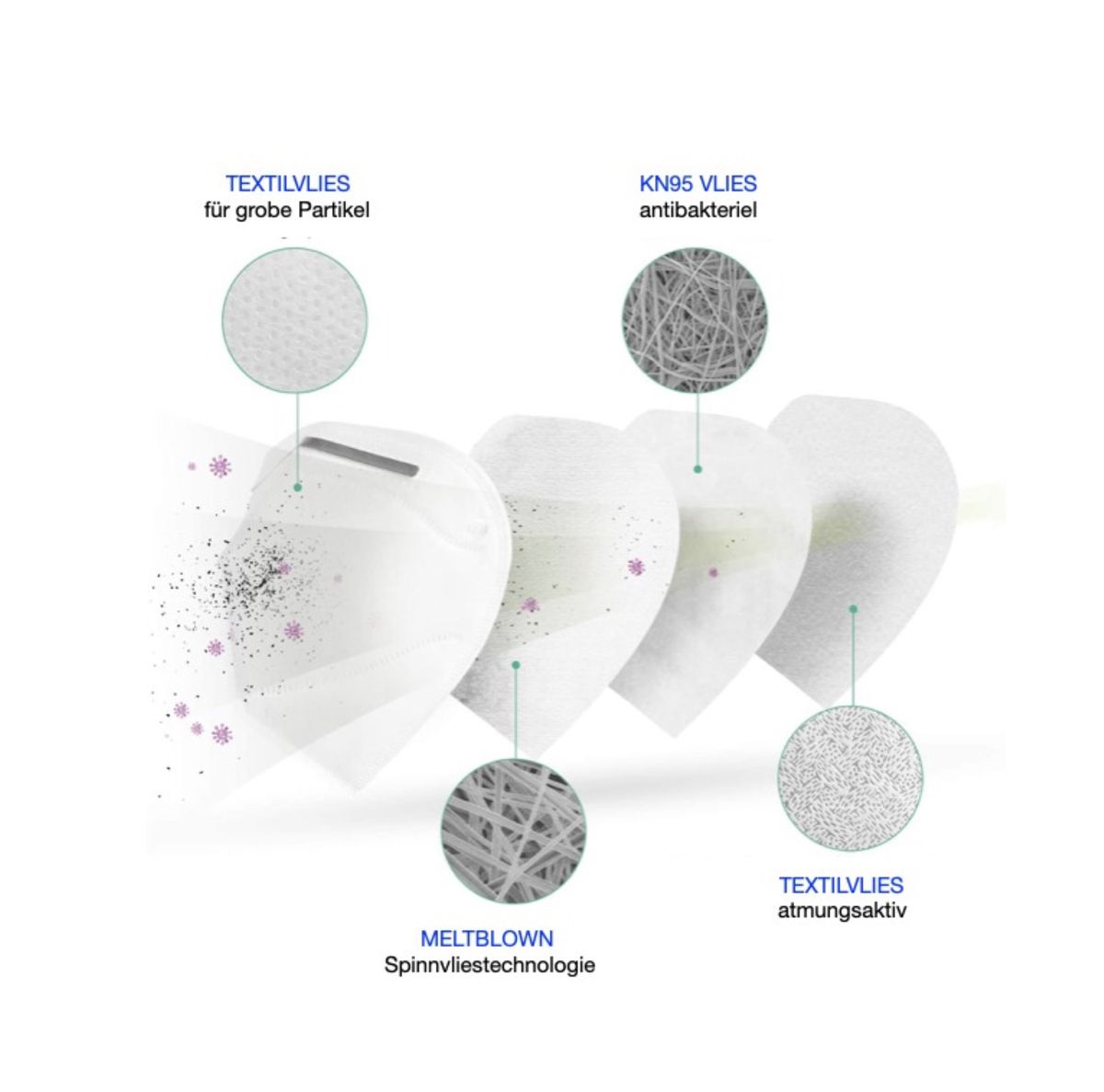 - 20x masque respiratoire masque facial KN95 5 pièces 95% de performance de filtre