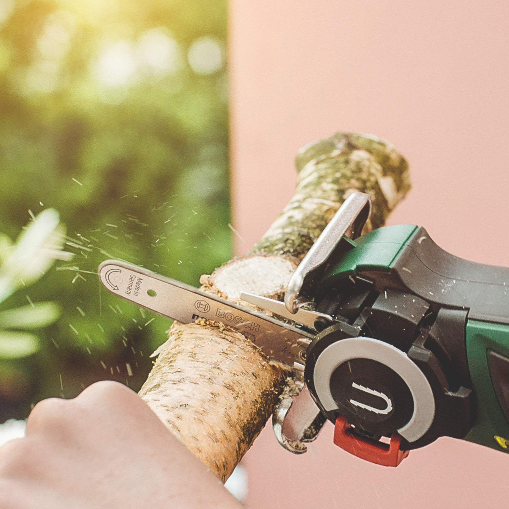 L'EasyCut 12 est une scie sans fil maniable, sans batterie ni chargeur fournis. Elle est idéale pour les coupes simples à main levée dans la maison et le jardin. La technologie NanoBlade intégrée permet un travail de sciage particulièrement confortable et sans vibrations. Les lames de scie ne nécessitent aucun entretien - elles ne doivent être ni huilées, ni affûtées, ni serrées. Le système SDS permet de changer les lames de scie rapidement et sans outils. L'EasyCut 12 coupe le bois, les matériaux à base de bois et le plastique jusqu'à une profondeur de 65 mm. Grâce à sa conception sans fil, elle offre une grande liberté de mouvement et se range facilement grâce à une dragonne pratique. L'appareil fait partie du système POWER FOR ALL 12V, ce qui permet d'utiliser une seule batterie pour tous les outils Home & Garden compatibles. La technologie Syneon intégrée assure ainsi une utilisation efficace de l'énergie et une plus grande autonomie.