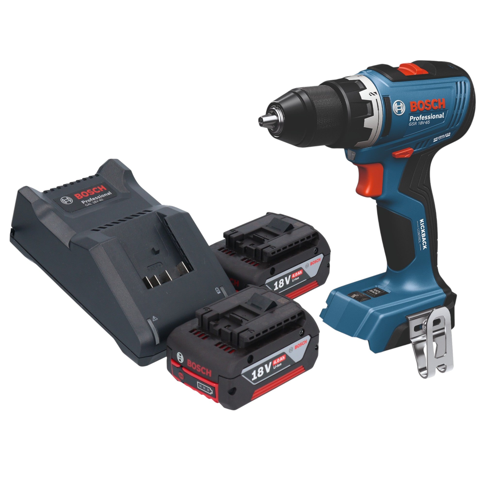 Bosch GSB 18V-65 Professional Perceuse-visseuse à percussion sans fil 18 V 65 Nm Brushless + 2x batterie 4,0 Ah + chargeur