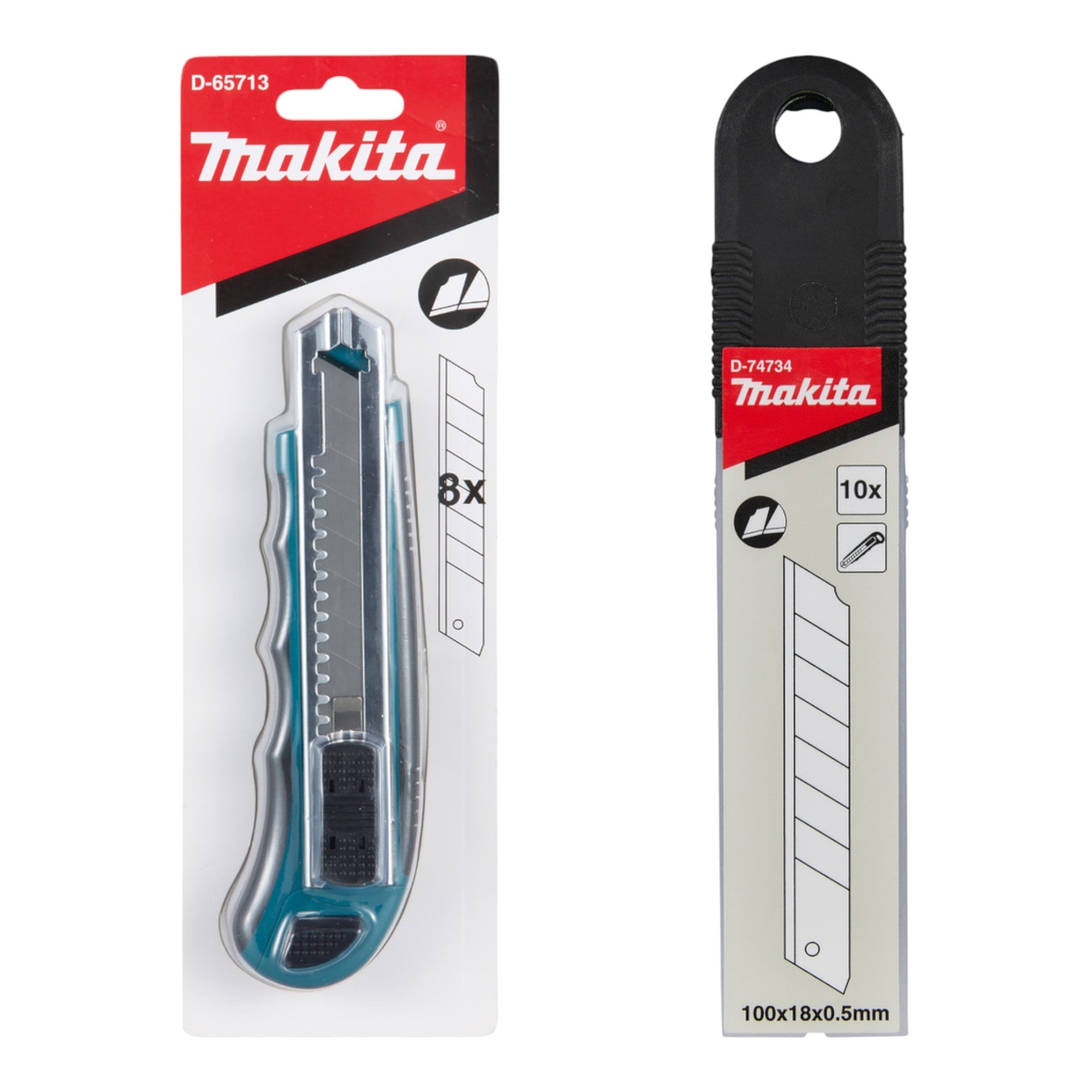 Cutter Makita avec lames sécables 100 mm + 8 lames de rechange ( D-65713 ) + jeu de 10 lames sécables ( D-74734 )