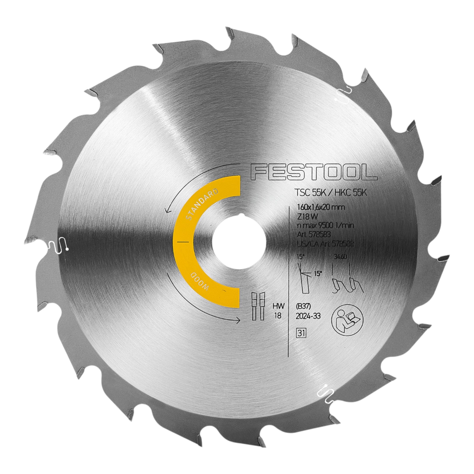 Festool HW 160x1,6x20 W18 Lame de scie circulaire WOOD STANDARD 160 x 1,6 x 20 mm ( 578583 )
