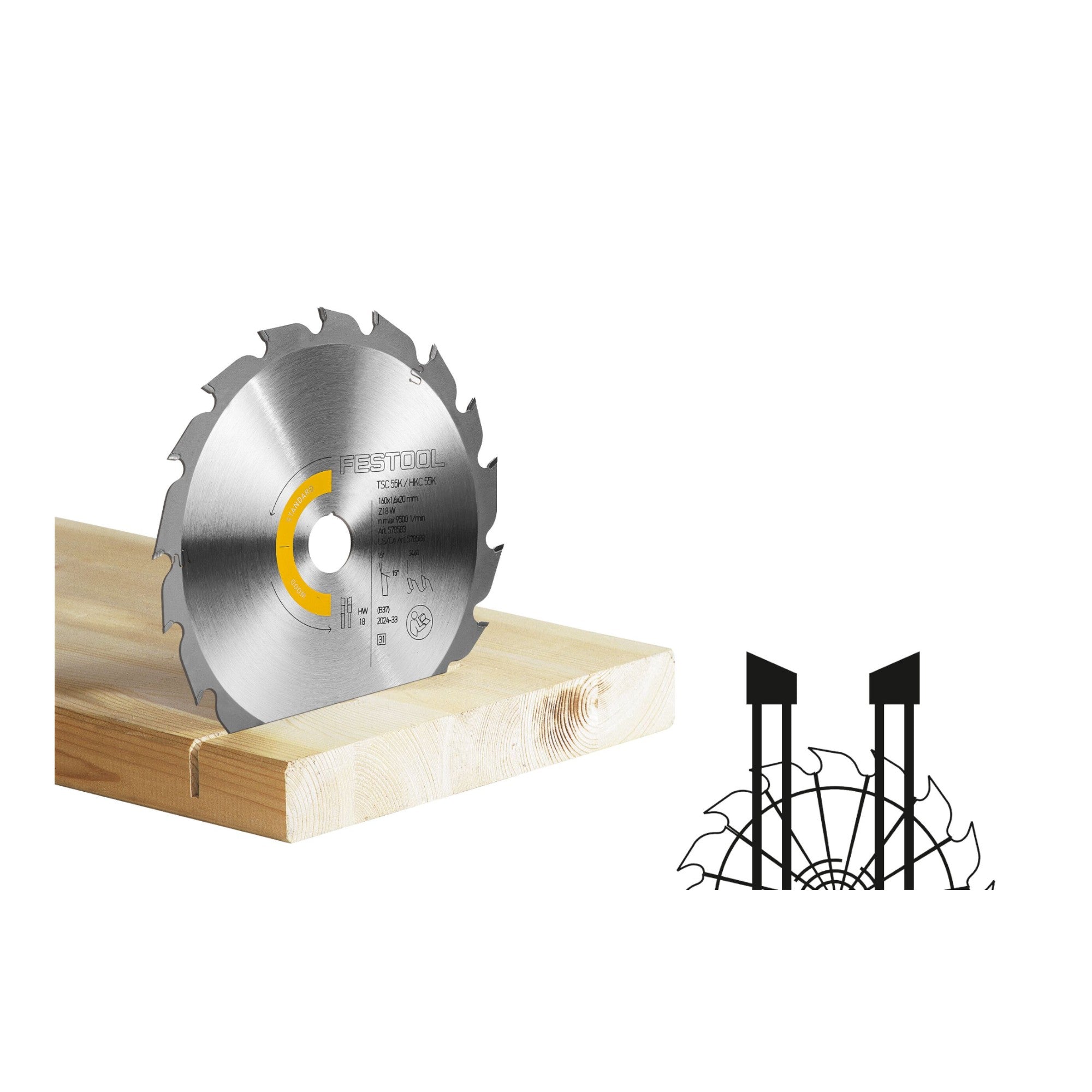 - 1x Festool HW 160x1,6x20 W18 Lame de scie circulaire WOOD STANDARD ( 578583 )