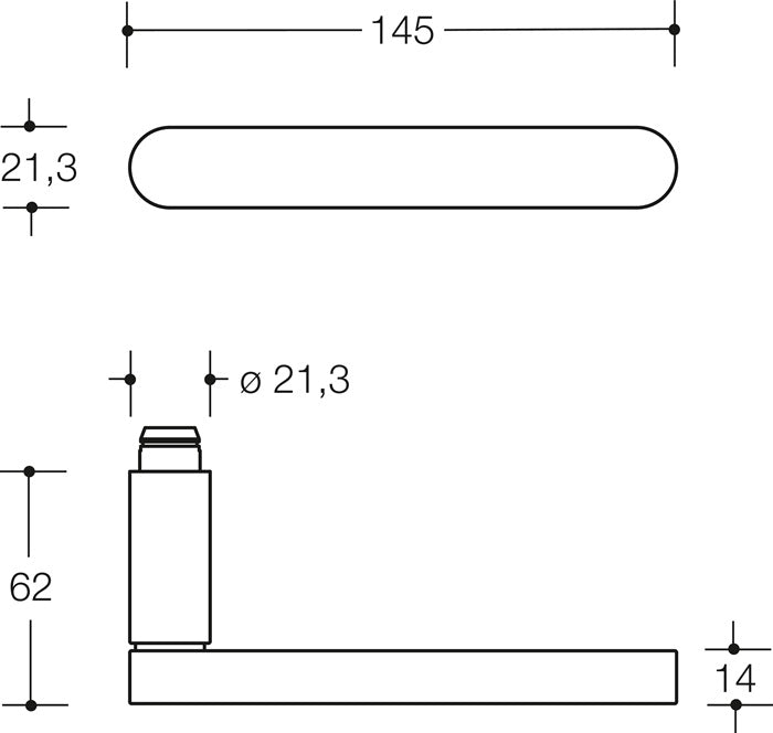 en technique H avec rosaces selon DIN 18255 et DIN EN 1906 en acier inoxydable, surface brossée mate, se composant de : Béquille de porte modèle 271X... en forme de L en acier inoxydable (1.4301), diamètre de l'embout 21,3 mm, avec guidage de l'embout et rainure d'arrêt, avec vis sans tête M5 comme fixation supplémentaire des béquilles avec la tige carrée pour une transmission optimale de la force dans le vantail. Montage par simple encliquetage des béquilles dans les parties inférieures prémontées sur la porte. L'encliquetage peut être libéré à l'aide d'une clé de démontage. Rosaces 305.21X... et 306.23X..., sous-construction 305.21X... en construction composite plastique/acier avec surface zinc/nickel noire pour une protection optimale contre la corrosion, module de maintien en hauteur intégré avec soutien par ressort, utilisable DIN gauche et DIN droite, pour soutenir la serrure et lui assurer une plus longue durée de vie. Palier à rotation fixe des béquilles avec verrouillage circulaire à enclenchement automatique et palier de 5 mm comme palier lisse sans entretien avec zone de compensation élastique pour annuler les éventuelles imprécisions de montage. Vissage invisible, sans desserrage, avec combinaison de vis en acier inoxydable M5 et de vis à douille ainsi que de tourillons d'appui s'enfonçant dans le panneau de porte. Cache de rosace, rond, en acier inoxydable (1.4301), diamètre 55 mm, hauteur 10,5 mm, épaisseur de paroi 1,5 mm. Conçu et testé pour le secteur public, catégorie d'utilisation selon DIN EN 1906 - classe 4 Garniture, avec tige carrée 8 mm, pour épaisseur de porte 38-48 mm - longueur de béquille 150 mm - Garniture de chambre