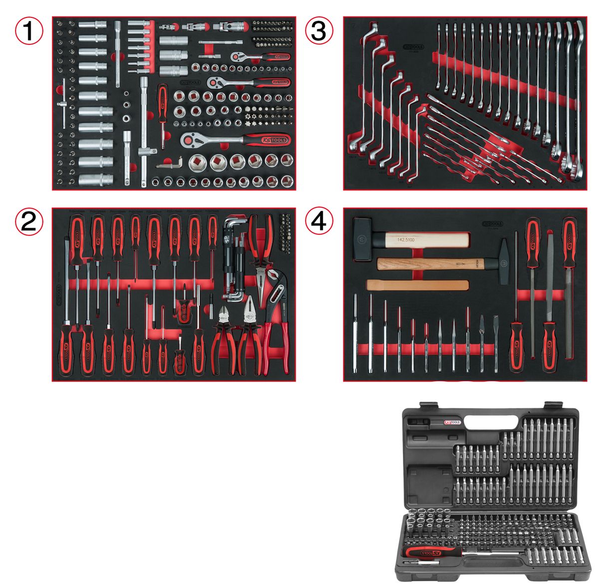 KS TOOLS Composition de 515 outils de qualité pour 4 tiroirs de servante ( 713.0515 )