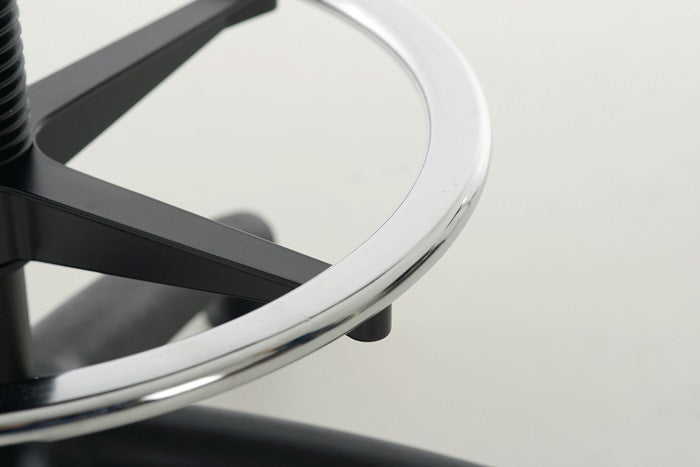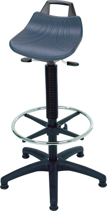 Assise : PU, bleu · résistant · 370 mm de large · Réglage de la hauteur d'assise par ressort à gaz recouvert : 610-860 mm · Réglage de l'inclinaison : 15 ° · Déverrouillage par levier · Base : plastique, Ø 630 mm avec repose-pieds