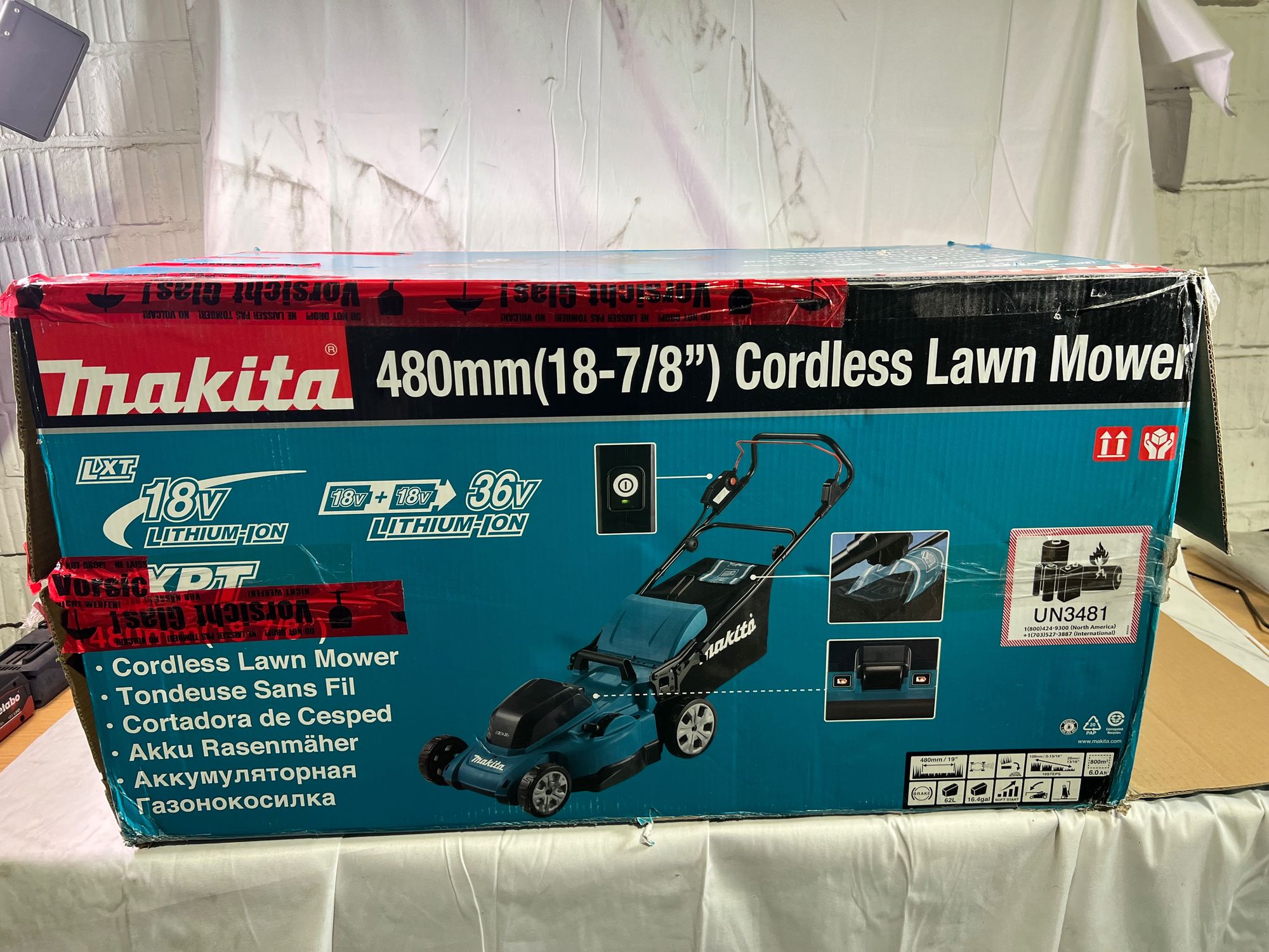 Makita DLM 480 CT2 Akku Rasenmäher 36 V ( 2x 18 V ) 48 cm 62 l + 2x Akku 5,0 Ah + Ladegerät - Reparaturgerät