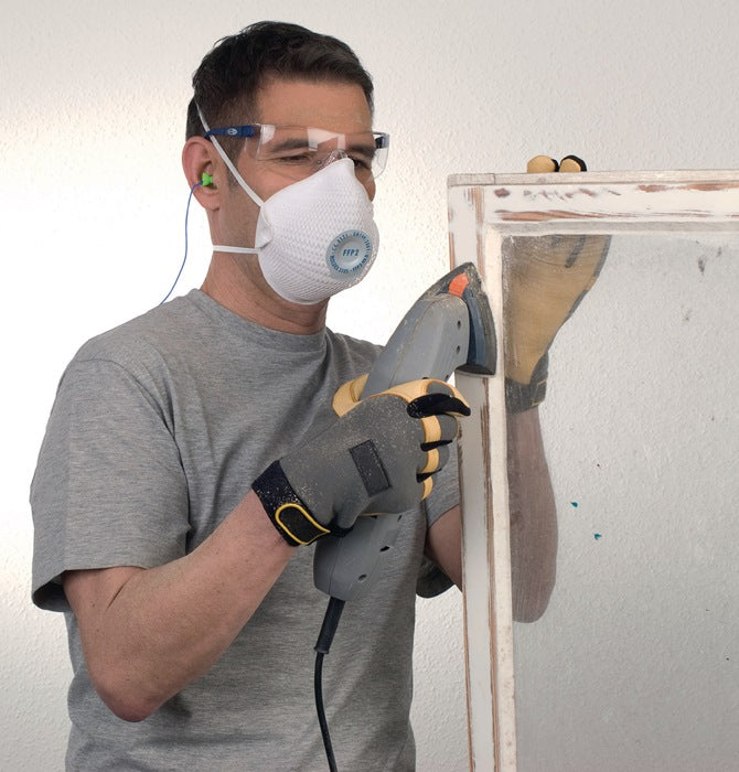 réutilisable - contre les poussières, fumées et aérosols non toxiques à base d'eau et d'huile - jusqu'à 10 fois la VLInst - non contre les substances CMR, les particules radioactives et les agents biologiques en suspension dans l'air du groupe de risque 3 et les enzymes - homologué pour la classe de filtration FFP2 / V NR D¹ - DIN EN 149:2001 + A1:2009 - avec valve climatique - avec technologie de filtre pliant - lèvre d'étanchéité au niveau du nez ¹ D = test de poussière de dolomie - utilisation : par ex. par ex. manipulation de bois tendre, de fibres de verre, travail des métaux, travail des matières plastiques (sauf PVC) et brouillards d'huile