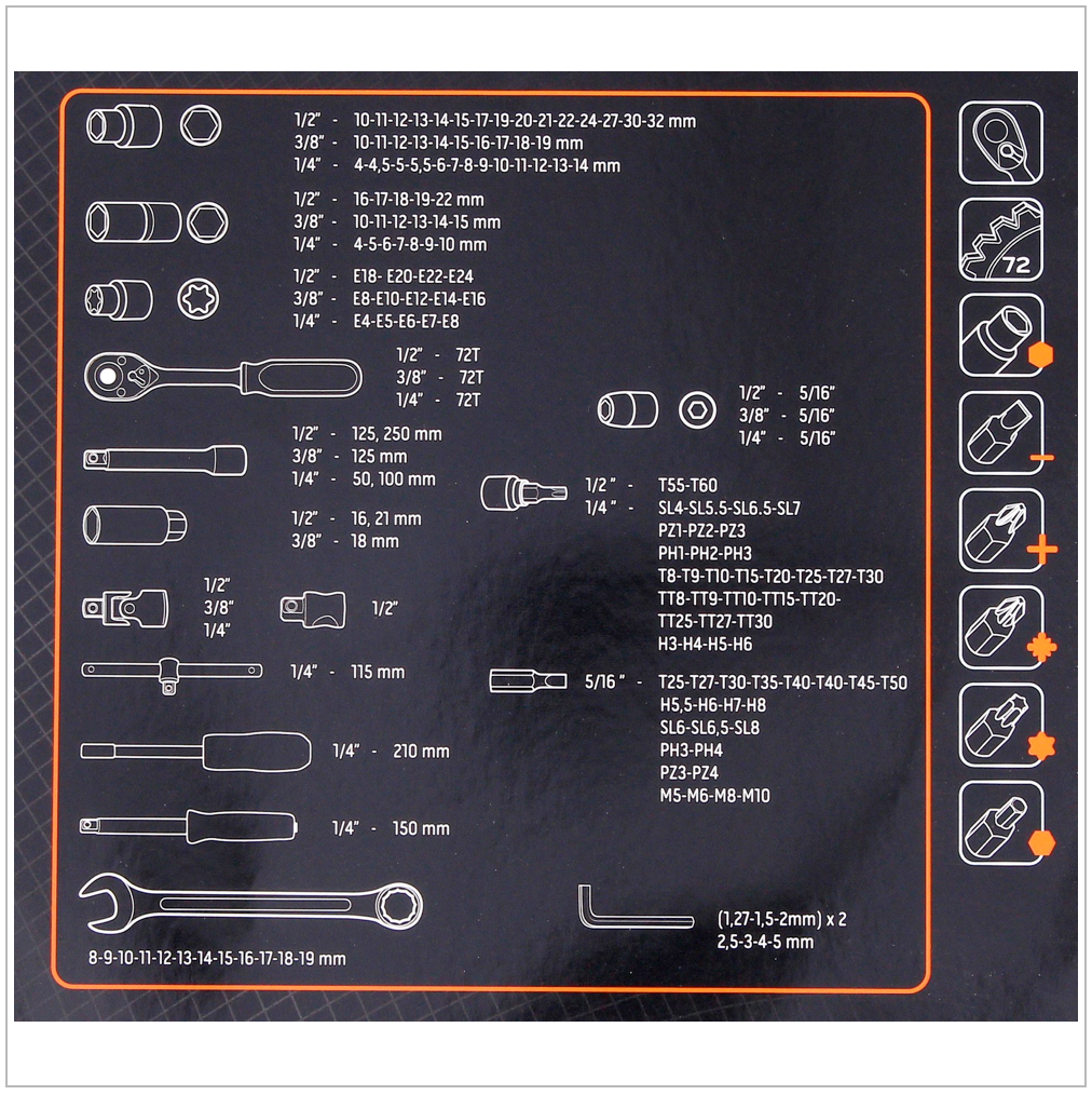 Jeu de clés à douilles professionnelles NEO 219 pièces 1/2", 1/4", 3/8" (Neo 08-671) dans un coffret
