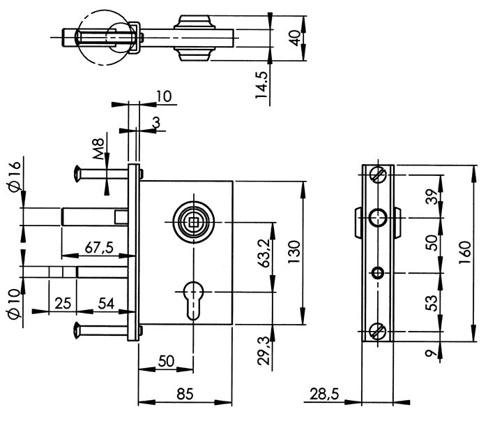 Serrure à grille AMF 107 dimension de l'axe 50 mm galvanisée ( 3311021048 )