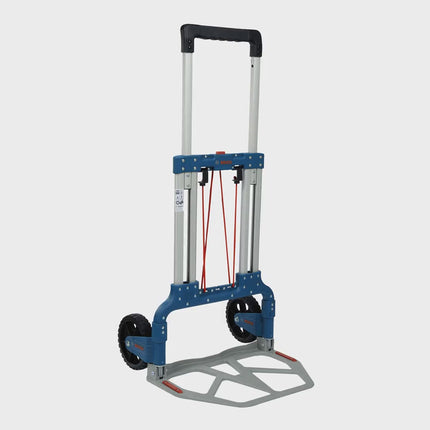 Il carrello Alu Caddy di Bosch colpisce per il suo design compatto e il suo peso leggero di soli 7,1 kg. Grazie alle ruote pieghevoli in combinazione con la superficie d'appoggio pieghevole, il carrello porta sacchi può essere spiegato rapidamente e facilmente. La maniglia facile da impugnare supporta il trasporto sicuro delle merci sulla parte superiore. Inoltre, le superfici di supporto laterali garantiscono un trasporto sicuro delle cassette degli attrezzi adatte. Le cinghie di gomma elastica sul carrello manuale forniscono una sicurezza aggiuntiva su terreni irregolari. Con un peso di carico di 125 kg su una superficie dritta e di 60 kg per le scale, il carrello per sacchi pieghevole Alu Caddy Professional di Bosch è un vero risparmio di lavoro.