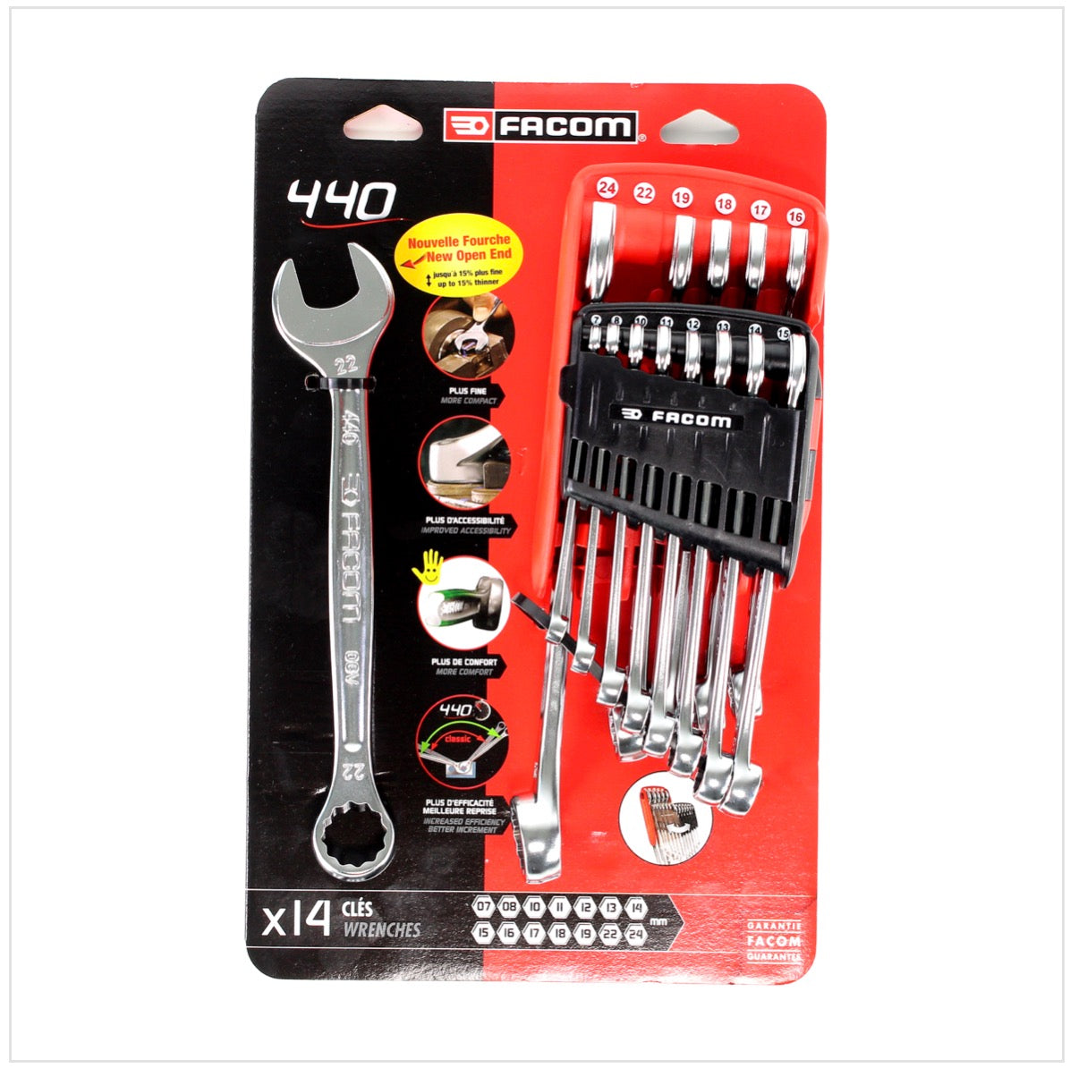 Facom 440.JP14 Set di chiavi combinate ad anello in astuccio - 14 pezzi ( 7 - 24 mm )
