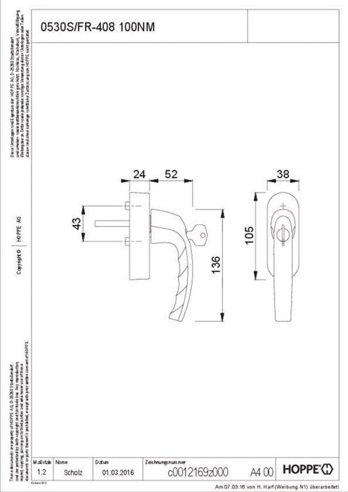 - 1x Manilla para ventana HOPPE de aluminio 32-42 mm