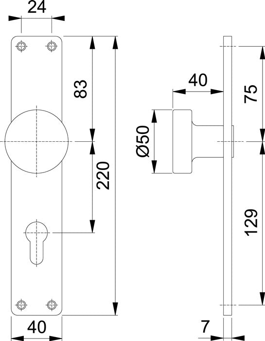 HOPPE Manopola piastra lunga 54/202 Alluminio F2 72 mm ( 3000252039 )
