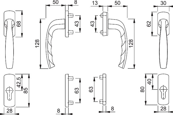 Hoppe set da balcone New York 0810/961N/U10/... ( 3000203701 ) Alluminio F9016 Quadrato 7 mm