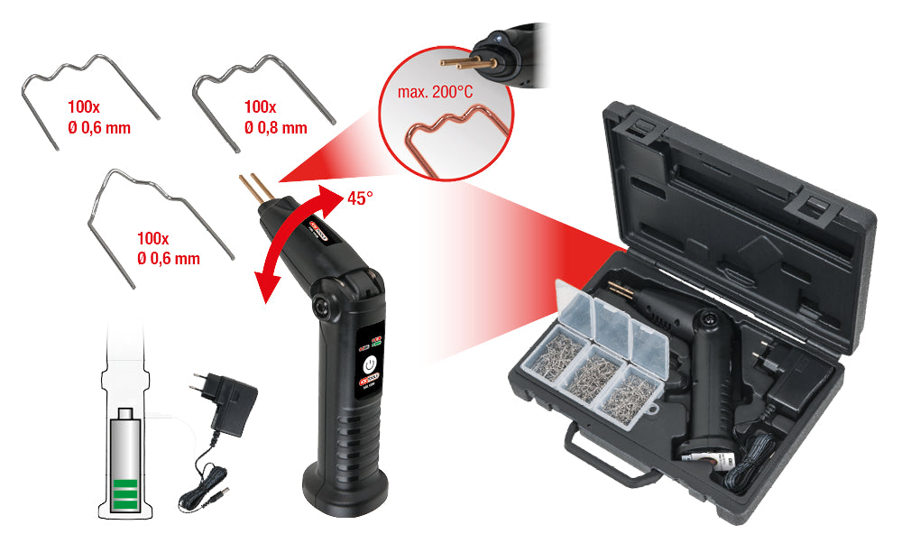 KS TOOLS Set cucitrice a caldo per plastiche, cordless, 302 pz ( 150.1035 )