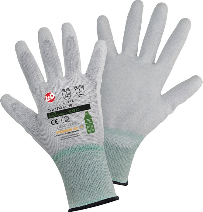 LEIPOLD+DÖHLE Guante de punto fino Goes Green ESD talla 9 gris claro/blanco (4000391283)