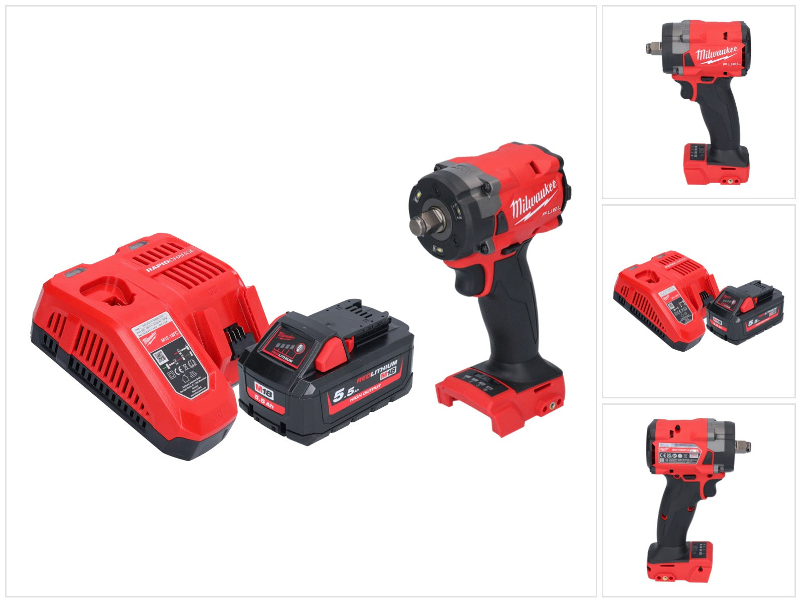 Milwaukee M18 FIW2F12-551 Akku Schlagschrauber 18 V 339 Nm 1/2" Brushless + 1x Akku 5,5 Ah + Ladegerät